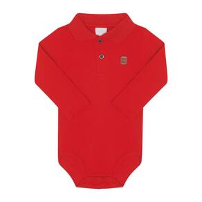 Com gola polo em tecido suedine na cor vermelho, seu pequeno cavalheiro vai estar pronto para qualquer ocasião especial com esse look. O body possuí manga longa e aplique termocolante no canto esquerdo do peito de quem veste e para facilitar o momento de troca possuí também abertura entre as pernas e fechamento com botões de pressão! \n