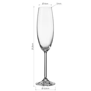 DIMENSÕES DA TAÇA: Altura: 25,8cm Diâmetro da base: 6,6cm Diâmetro do bojo: 5,7cm Diâmetro da boca: 4cm Espessura do vidro: 0,1cm Peso de cada taça: 152g