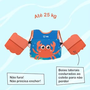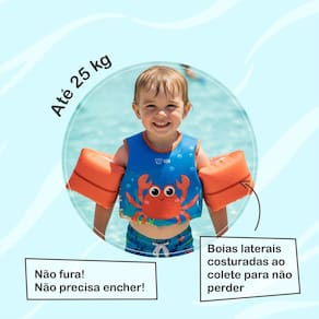 • Material em espuma interna, sem necessidade de inflar • Alças ajustáveis e fecho nas costas • Design anatômico que permite liberdade de movimentos • Estampas lúdicas e coloridas • Indicado para crianças de 2 a 7 anos • Peso recomendado: aproximadamente de 12 a 25 kg • Uso indicado para momentos de lazer em piscina, praia ou lago