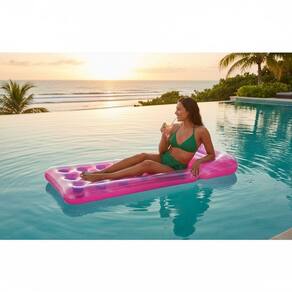 Benefícios Principais Esse colchão inflável Intex bote copinhos rosa transforma piscinas em oásis de conforto, com design atrativo e flutuação estável para horas de lazer sem preocupações. Leve e fácil de transportar, resiste a perfurações comuns, ideal para quem busca boia colchão inflável rosa verão resistente e estiloso.