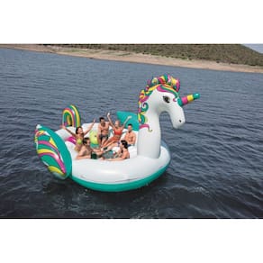 Boia Gigante Ilha Unicornio Inflavel 6 Pessoas 6x4m - Bestway Transforme seus dias de sol em um verdadeiro conto de fadas com a Boia Gigante Ilha Unicornio da Bestway. Com impressionantes 6 metros de comprimento por 4 metros de largura, ela oferece espaco confortavel para ate 6 pessoas relaxarem juntas na piscina, lago, rio ou ate no mar. Projetada para proporcionar maximo conforto e diversao, essa ilha inflavel conta com 6 porta-copos individuais, 1 porta-copo jumbo que tambem funciona como balde de gelo, alem de dois encostos extra largos para momentos de descanso absoluto. A plataforma integrada facilita o acesso a agua, tornando o uso ainda mais pratico. Fabricada em vinil resistente e pre-testado, possui corda de seguranca ao redor de toda a estrutura, 4 alcas reforcadas de alta resistencia e fundo em malha, que proporciona maior estabilidade e conforto. As valvulas de liberacao rapida interligadas permitem inflar e desinflar com facilidade e rapidez. Ideal para reunir amigos e familia com estilo e seguranca, a Ilha Unicornio Gigante e o destaque garantido do verao. Caracteristicas Tecnicas: Dimensoes aproximadas: 6m x 4m Capacidade: ate 6 pessoas Valvulas interligadas de liberacao rapida Vinil resistente e pre-testado Corda de seguranca ao redor 6 porta-copos + 1 porta-copo jumbo (balde de gelo) 4 alcas reforcadas 2 encostos extra largos Fundo em malha Acompanha kit de reparo reforcado Conteudo da Embalagem: 1 Ilha Inflavel Unicornio 1 Plataforma de acesso 1 Kit de reparo reforcado