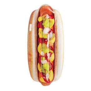 Divirta-se com esta bóia colchão inflável Hot Dog INTEX, tem a forma de cachorro quente e a sua impressão é realista, e o material é muito resistente e durável.