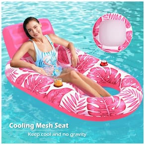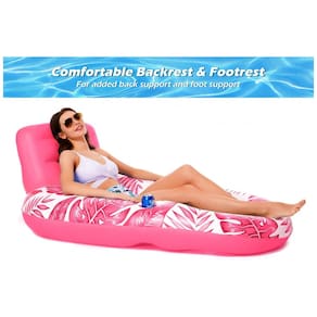 A boia inflável para piscina Jasonwell Tropical Rose é um acessório de flutuação projetado para adultos, funcionando como uma poltrona flutuante com encosto e apoio para pés. Indicada para uso em piscinas, lagos, rios e praias, oferece estabilidade em tamanho grande para acomodar usuários com até 227 kg.
