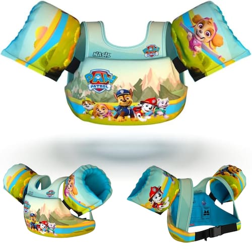 Marca: Nash Modelo: Coleta Salva Vidas Material: Tecido Oxford e espuma de polietileno expandido Personagem: Patrulha Canina Turma Toda Tamanho: 33 x 20 cm Idade recomendada: 1 a 7 Anos. Peso: 12kg até 25kg Fabricante: Nash Boias