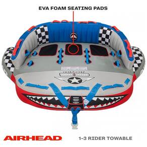 Tubo de 1 a 3 pilotos para passeios de barco e esportes aquáticos. Pontos de reboque duplos Dois pontos de reboque separados para que você possa decidir como deseja andar. Kwik Connect Nosso sistema de reboque exclusivo permite conectar rápida e facilmente seu tubo à corda. EVA Padding Almofadas de espuma confortáveis que tornam o seu passeio suave e agradável. Válvula de segurança de velocidade patenteada Válvula simples patenteada para inflar e desinflar de forma rápida e fácil Marca: Não Informado