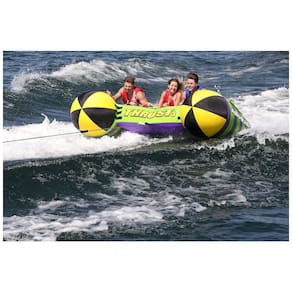 O mais tubo rebocável de 3 pilotos da Airhead é um tubo de convés que oferece mais salto para pilotos experientes. Este tubo rebocável foi projetado com uma frente elevada e possui alças de montagem para que você possa voltar da água. Três pilotos podem voar com cada esteira, curva e salto graças a este design cônico. Feita de bexiga de PVC soldada por RF de calibre 30 durável que é completamente coberta em nylon 840 denier com costura dupla Equipado com um prendedor de corda Kwik Connect para conexões rápidas de barco na água Marca: Não Informado