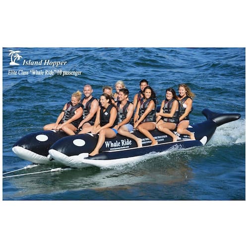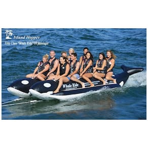 ENVIAMOS NO MESMO DIA ÚTIL QUE O PEDIDO DO FABRICANTE DA CALIFÓRNIA. O barco de banana Whale Ride de 10 homens redesenhado é mais largo e mais estável, construído para se apresentar excelente em condições de águas agitadas e uso oceânico. Material Resistente a UV resistente a UV reforçado 1100 denier 1.1 Litros PVC. Material denso resistente a perfurações, reforçado em áreas de alta tensão. Elite Class Costuras soldadas para durabilidade e longevidade. Anéis de tração de aço inoxidável, arnês de reboque com alavanca de aço Marca: Não Informado