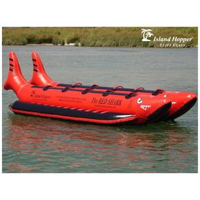 ENVIAMOS NO MESMO DIA ÚTIL QUE O PEDIDO DO FABRICANTE DA CALIFÓRNIA. O banana boat Red Shark de 10 homens redesenhado é mais largo e mais estável, construído para uma excelente pré forma em condições de águas agitadas e uso oceânico. Material Resistente a UV resistente a UV reforçado 1100 denier 1.1 Litros PVC. Material denso resistente a perfurações, reforçado em áreas de alta tensão. Elite Class Costuras soldadas para durabilidade e longevidade. Anéis de tração de aço inoxidável, arnês de reboque com alavanca de aço Marca: Não Informado