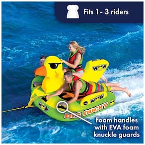Assento de selim para 2 pilotos com assento de almofada de espuma EVA e uma cauda macia personalizada para um passeio no rebocável inflável. Grandes almofadas de espuma EVA no convés para os side riders. Sistema de pára choques lateral para manter os pilotos no tubo para passeios extremos. Rebocável de 1 a 3 pessoas este tubo rebocável de luxo personalizado apresenta um tema de design wow Big ducky, assento de sela , bem como uma grande área de deck em forma de asa para 1, 2 ou 3 pilotos para sentar, ficar de pé, ajoelhar ou deitar baixa. Design de cores de alta visibilidade O pato inflável tem um design peculiar e único. A cor de alta visibilidade com gráficos de outdoor cria emoção para os pilotos, mas também permite que todos na água saibam que você está lá. Construção robusta este tubo Duck possui uma construção de sistema de reboque de 3 pontos para serviço pesado, com membrana larga. Conector EZ TOW moldado embutido para conexão do ponto de reboque EZ. A construção de nylon resistente oferece estabilidade durante o passeio mais difícil. Tipo de ajuste ajuste universal Marca: Não Informado