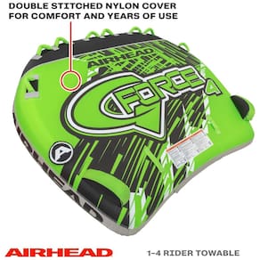 Tubo de 1 4 pilotos para passeios de barco e esportes aquáticos Kwik Connect patenteado Kwik Connect da Airhead para conexão de corda rápida e fácil Totalmente Coberto Cobertura de nylon completa para serviço pesado Aletas de reforço Mantém os pilotos s durante a tubulação Alças acolchoadas Alças acolchoadas antiderrapantes proporcionando conforto e estabilidade Marca: Não Informado