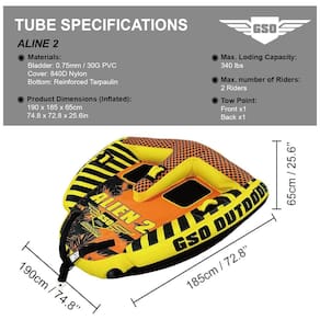 Perfeita para Entusiastas de Esportes Aquáticos: Com capacidade de 340 lbs (154 kg), a boia é ideal para até 2 pilotos, sendo perfeita para diversão em família ou competição amigável. Sua construção robusta e recursos de segurança fazem dela uma escolha essencial para quem ama passeios de barco e tubing.