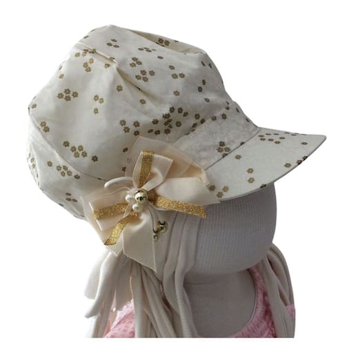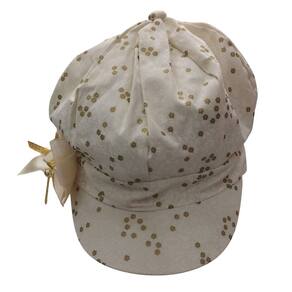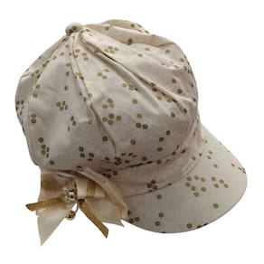 Boina/boné infantil para meninas, nas cores: rosa com bolinhas brancas, cru com mini florzinhas e bege com dourado, todas com um lindo laço na lateral.