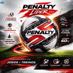 Alguns diferenciais técnicos: - A Bola de Campo Penalty Líder conta com Câmara 6D com ótima resistência à retenção de ar, proporcionando equilíbrio total para a bola. E tem mais, com a tecnologia Cápsula SIS, seu miolo é lubrificado e substituível, além de bico alongado que envolve a agulha impedindo que perfure a câmara de ar.