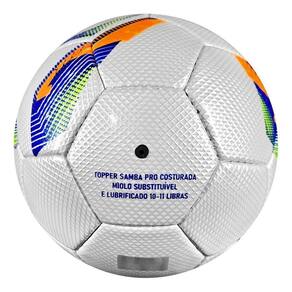 Revestimento: PU Pro Cores predominantes: Branco, Azul, Laranja, Verde. Circunferência aproximada: 68 - 70 cm Peso aproximado: 410 - 440 g Gomos: 32 gomos Miolo: Substituível e Lubrificado