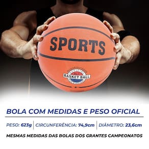 BOLA DE BASQUETE OFICIAL.A Bola da Sports vai te proporcionar maior aderência para as mãos em todas as jogadas,pois é toda texturizada. Além do mais, a bola é confeccionada em borracha reforçada, podendo ser usada em qualquer tipo de quadra ou piso. Seja dentro ou fora das quadras, essa bola vai fazer você se sentir um astro da NBA, por ser de material de excelente qualidade. Tenha certeza, essa bola, por toda sua resistência na construção, vai aguentar a energia que só uma partida de basquete tem.Especificações da Bola de Basquete Profissional:Tamanho: Número 7, igual as Bolas Oficiais dos maiores campeonatos (padrão oficial);Circunferência: 74,9 cmPeso: 623 gramas;Cor: LaranjaMaterial: Borracha matizada texturizada reforçada.Duvidas Frequentes:Pergunta: A bola vem cheia?Resposta: Não, por questões logísticas ela vai vazia, mas acompanha pino auxiliar, sendo necessário uma bomba manual.
