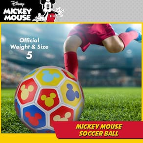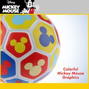 Capelli Sport Bola de futebol Disney Mickey Mouse, design de cores primárias, futbol, juvenil, multi, tamanho 5 - Bola de futebol da Disney: a bola de futebol multicolorida mede 20 cm de diâmetro e é decorada com imagens do Mickey Mouse, perfeita para brincadeiras internas e externas para crianças e jovens - CONSTRUÇÃO DE HABILIDADE: Ótimo para treino de futebol e treinamento para ajudar a desenvolver e desenvolver habilidades em chutes, manuseio de bola, drible e jogo em equipe - Estrutura durável: a bola de futebol juvenil é meticulosamente trabalhada com 32 painéis e tecnologia costurada à máquina e possui um revestimento externo de PVC resistente à água junto com uma bexiga interna de borracha para retenção ideal de ar - Pré-inflada: a bola de futebol infantil chega pré-inflada, no entanto, é normal que as bolas de futebol percam gradualmente o ar em alguns dias em trânsito ou devido a mudanças de temperatura, então você pode precisar completá-la antes do primeiro chute - Licenciado oficialmente: tenha confiança sabendo que você está comprando um produto oficialmente licenciado da Disney