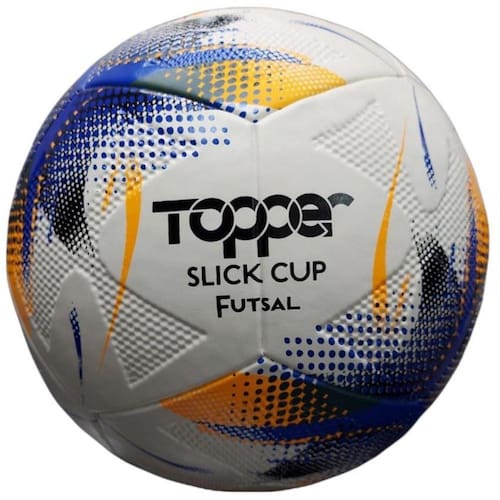 Características: Fabricada pela Topper, a bola de futsal modelo Slick é indicada para o futebol de salão confeccionada em poliuretano sem costura, oferecendo material resistente e impermeável. Seu design apresenta o branco como cor predominante com diferentes tons de azul. Apresenta ainda, detalhes em preto, tal como a logo da Topper. Além disso, traz câmara Butil e miolo removível, aprimorando a retenção de ar.