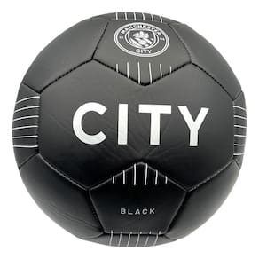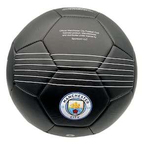 Bola De Futebol Oficia Manchester City Oficial 5 Uma bola, em preto, com detalhes em prata e com o símbolo do time estampado nela. Produto Oficial Manchester City. Confeccionada com PVC Resistente, câmara feita com borracha butílica Medidas aproximadas: número 5. Marca: Não Informado