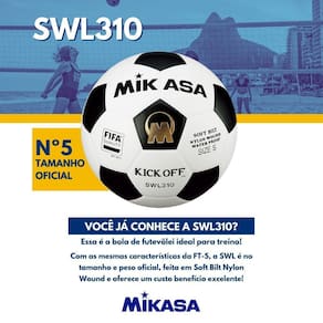 A bola de futevôlei kick off swl310 companheira de muitos voltou, reacendemos a paixão com a edição limitadíssima da swl310. Ela um item com selo de qualidade fifa quality que foi desenvolvido para oferecer muita diversão, com qualidade e sem deixar de lado o conforto em cada toque. Exclusiva para uso no futevôlei, a bola de futevôlei kick off swl310 é resistente, leve e garante mais precisão na hora do chute. além disso, suas cores vibrantes conferem uma beleza toda especial aos seus momentos de lazer entre amigos. com a bola de futevôlei kick off swl310 você levará suas partidas para um outro nível, já que este é um produto de uso próprio para o futevôlei, que alia qualidade, resistência e precisão em um único produto. Características da bola de futevôlei kick off swl310: Cor: branco e preto Composta: 32 painéis, material sintético de alta densidade e construção soft built nylon wound Laminada com uma tecnologia diferenciada. Centro: nylon Padrão: triangular moldado Tamanho: 5 Marca: mikasa Facilitando o seu dia Marca: Não Informado