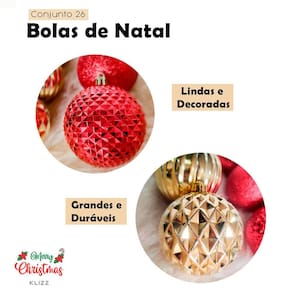Este conjunto é ideal para quem deseja criar uma decoração natalina variada e elegante, com toques de brilho, textura e sofisticação, proporcionando um ambiente acolhedor e festivo para celebrar o Natal com estilo e bom gosto.