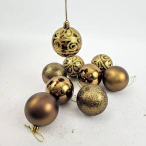 Bola De Natal Bronze Decorada 6cm Para Árvore Kit 9pc