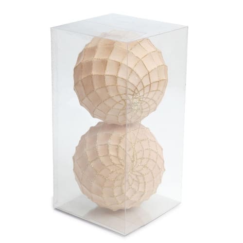 - Com 12cm de diâmetro, essas bolas têm um tamanho versátil que permite usá-las como destaque ou combiná-las com outros enfeites para criar uma decoração harmoniosa.