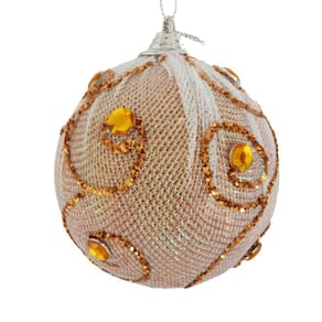 Material: EPS, Renda, Pedras artificiais e Glitter;Peso do kit: 100grCores: Laranja e Dourado.Conteúdo da Embalagem: 1 kit com 3 bolas.Diâmetro: 10cm