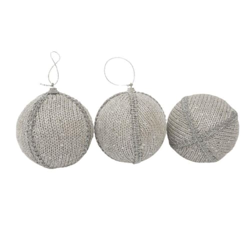 Material: EPS, Tricô, Tecido e Glitter;Peso do kit: 122grDiâmetro de cada bola: 10cmCores: Prata e Cinza;Conteúdo da Embalagem: 1 kit com 3 bolas.