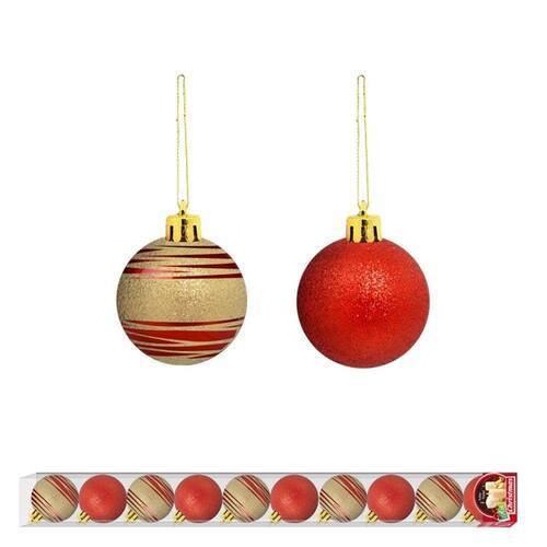 Bola de Natal Mônaco Vermelha Listrada Brilhante 10 Unidades