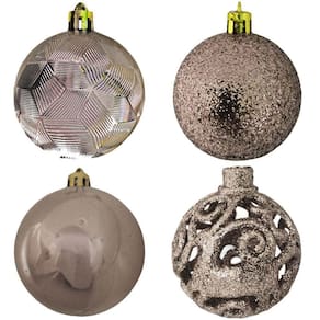 - Bola de Natal Champanhe com Glitter Vazada: toda decorada com um relevo vazado de forma arabesca que causa um contraste único;