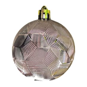 - Bola de Natal Champanhe Riscos: em formato redondo tradicional com diversas linhas geométricas formando losangos;