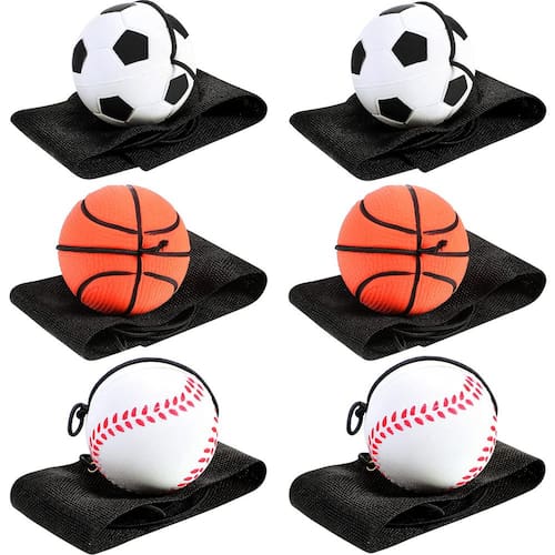 - Conteúdo da embalagem: o pacote vem com 6 peças de bolas de retorno de pulso em 3 estilos diferentes, que incluem basquete, futebol, beisebol, 2 bolas de cada tipo, o suficiente para o seu exercício diário, jogo e substituição, e você também pode compartilhar essas bolas de retorno de pulso com sua família e parceiros em grupos para desfrutar da felicidade de jogar bolas