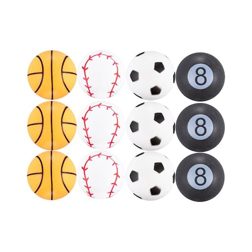 Kit com 12 bolas de tênis de mesa com estampa temática de esportes (futebol, basquete, beisebol e sinuca).