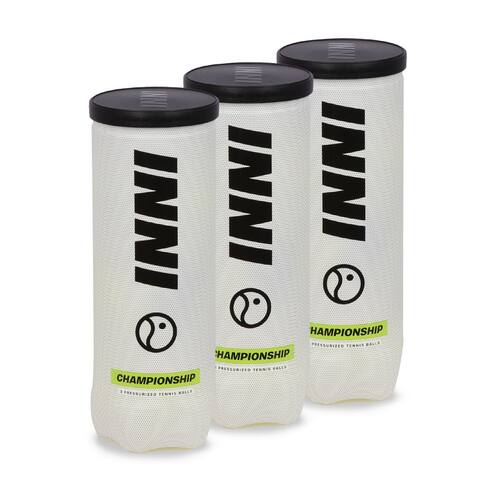 Bola de Tênis INNI Championship - 3 TubosA bola de tênis INNI Championship é ideal para tenistas de todos os níveis. Qualidade e desempenho tão bom quanto às melhores bolas da mesma categoria do mercado, utiliza feltro sintético agulhado Tex Tech.Desenvolvidas com alta tecnologia, a bola de tênis INNI Championship possui ótima resistência à deformação, além de baixo desgaste abrasivo. Uma bola de alta durabilidade, indicada para todos os tipos de quadra.Qualidade aprovada - Bola certificada pela ITF - International Tennis Federation.- Alta Durabilidade;- Ótima resistência;- Todas as Quadras;- Feltro Sintético Agulhado;- Baixo Desgaste Abrasivo;- 3 Tubos com 3 Bolas em cada tubo. Marca: Não Informado Ean: 7898752831316