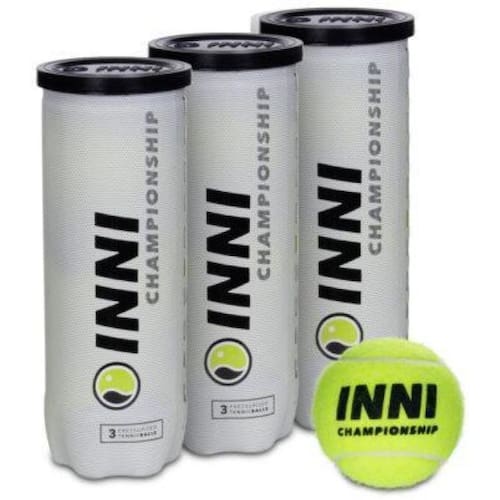 Bola de Tênis Inni Championship Pack c/3 Tubos A bola de tênis Championship é ideal para tenistas de todos os níveis. Qualidade e desempenho tão bom quanto às melhores bolas da mesma categoria do mercado, utiliza feltro sintético agulhado, do fabricante americano Textech. Desenvolvidas com alta tecnologia, a bola de tênis INNI Championship possui ótima resistência à deformação, além de baixo desgaste abrasivo. Uma bola de alta durabilidade, indicada para todos os tipos de quadra. Composição: borracha natural e feltro sintético agulhado. Não expor ao calor excessivo e não molhar o produto. Embalagem 100% reciclável. Validade indeterminada, produto não perecível. A abertura do tubo inicia o processo de despressurização das bolas. Marca: Não Informado