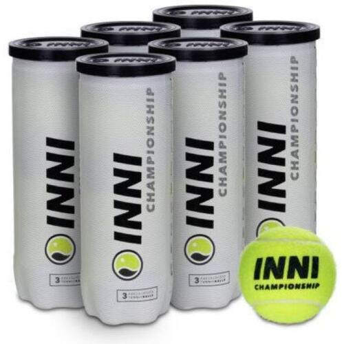 Bola de Tênis Inni Championship Pack c/6 Tubos A bola de tênis Championship é ideal para tenistas de todos os níveis. Qualidade e desempenho tão bom quanto às melhores bolas da mesma categoria do mercado, utiliza feltro sintético agulhado, do fabricante americano Textech. Desenvolvidas com alta tecnologia, a bola de tênis INNI Championship possui ótima resistência à deformação, além de baixo desgaste abrasivo. Uma bola de alta durabilidade, indicada para todos os tipos de quadra. Composição: borracha natural e feltro sintético agulhado. Não expor ao calor excessivo e não molhar o produto. Embalagem 100% reciclável. Validade indeterminada, produto não perecível. A abertura do tubo inicia o processo de despressurização das bolas. Marca: Não Informado