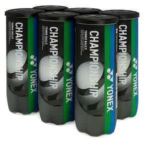 - Detalhamento: Pack com 6 tubos, escrita Yonex Championship na bola, serve para todos os tipos de quadra, excelente durabilidade, bola aprovada pela Federação Internacional de Tênis;