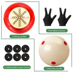 pacote inclui: 1 x bola de taco de bilhar, 1 x bola de treino, 2 x luvas de mesa de sinuca, 6