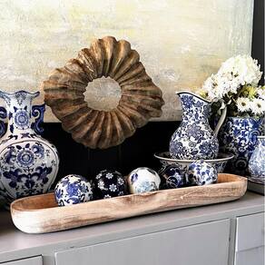 Estampa Arabesco Clássica: Detalhes em azul sobre fundo branco, com visual ornamental. Porcelana de Alta Qualidade: Brilho e acabamento fino, com excelente durabilidade. Decoração Versátil: Ideal para composições em bandejas, mesas e estantes. Peça Compacta e Sofisticada: Visual marcante sem ocupar muito espaço.