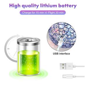 características: material: polipropileno bateria: 200mah incluído tempo de carga: cerca de 25 minutos diâmetro da : 9,5 cm 1 bola voadora azul