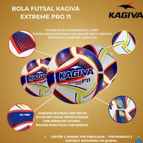 Sinta a revolução do futsal nos seus pés. A Bola Kagiva Extreme Pro F11 não é apenas um equipamento; é a extensão do seu talento na quadra. Projetada para quem busca a excelência, ela combina tecnologia de ponta com um toque de bola incomparável, garantindo que cada passe, drible e finalização seja executado com a máxima precisão. A marca F11 indica que esta é uma bola Oficialmente Aprovada e Recomendada para jogos e competições de Federações. Jogue com a certeza de estar usando um equipamento que atende aos mais altos e rigorosos padrões técnicos do futsal profissional.