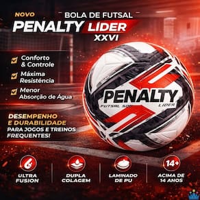 A Bola Futsal Penalty Líder XXVI foi desenvolvida para jogadores que buscam conforto, resistência e durabilidade em jogos e treinos frequentes nas quadras. Seu design moderno alia tecnologias Penalty e materiais de alta qualidade para garantir desempenho consistente durante toda a partida. A construção Ultra Fusion elimina costuras, reduz a absorção de água e mantém a bola mais uniforme e resistente. Com laminado em PU, proporciona excelente controle e precisão nos passes e finalizações.