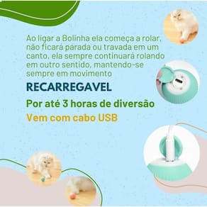 Antes do primeiro uso, certifique-se de carregar a bola completamente se ela for a versão com bateria recarregável. Ligue a bola pressionando o botão de ativação. A bola começará a se mover automaticamente. Nos primeiros usos, supervisione seu pet enquanto ele interage com a bola para garantir que ele entenda como brincar com o brinquedo. Após cada sessão de brincadeira, limpe a bola com um pano úmido para mantê-la higienizada.