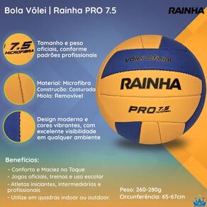 A Bola de Vôlei Rainha Oficial Pró 7.5 é a escolha perfeita para quem busca alto desempenho dentro das quadras. Desenvolvida com materiais de alta qualidade, ela oferece excelente controle, resistência e maciez ao toque tudo o que jogadores profissionais e amadores precisam para alcançar o melhor rendimento durante os treinos e competições.