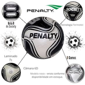 Pensando exclusivamente nas suas jogadas e no seu estilo de jogo clássico, a Penalty criou a Bola 8 de Society. Sua história tem o poder de mudar o jogo e o futuro das suas peladas. A 1° bola com 8 gomos do mundo foi criada nos mínimos detalhes para você brilhar dentro das quadras sintéticas. Garantindo 0% de absorção de água nas partidas chuvosas, você não vai mais precisar parar os jogos por conta do tempo. Brilhe em qualquer situação, você é um craque.