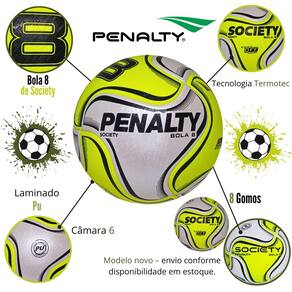 Pensando exclusivamente nas suas jogadas e no seu estilo de jogo clássico, a Penalty criou a Bola 8 de Society. Sua história tem o poder de mudar o jogo e o futuro das suas peladas. A 1° bola com 8 gomos do mundo foi criada nos mínimos detalhes para você brilhar dentro das quadras sintéticas. Garantindo 0% de absorção de água nas partidas chuvosas, você não vai mais precisar parar os jogos por conta do tempo. Brilhe em qualquer situação, você é um craque.
