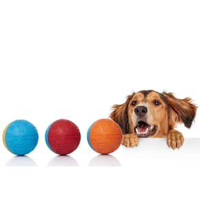 - 100% borracha natural – a maioria das outras bolas para cães são feitas de espuma de plástico