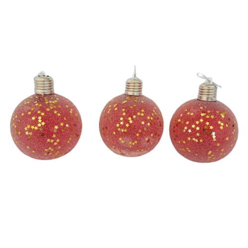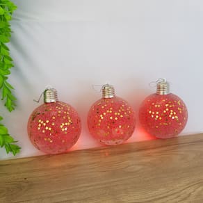 BOLAS DE NATAL COM LED 3 Pçs - KIT com 3 unid, Diâmetro de 10cm Cada Bola