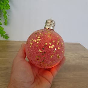 KIT COM 3 BOLAS DECORATIVAS DE NATAL COM LED, ESTRUTURA EM POLIPROPILENO E METAL, REVESTIDAS COM MINI ESTRELINHAS DOURADAS.
