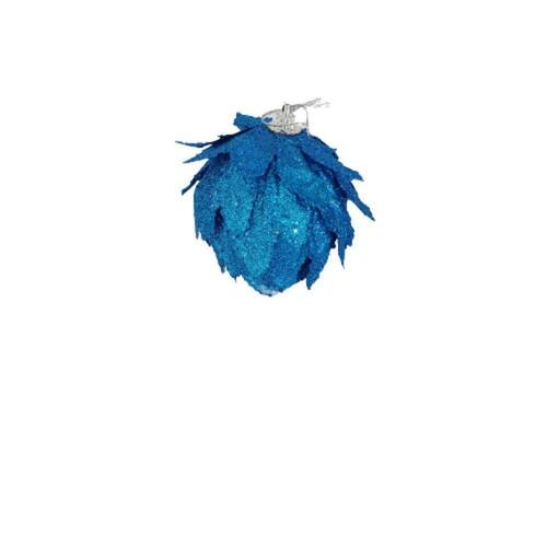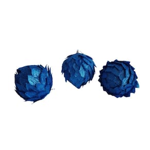 Kit com 3 bolas decorativas de natal azul com 10 cm de diâmetro, confeccionada em PVC revestida com EVA estilo (escama/Pétalas) e glitter.